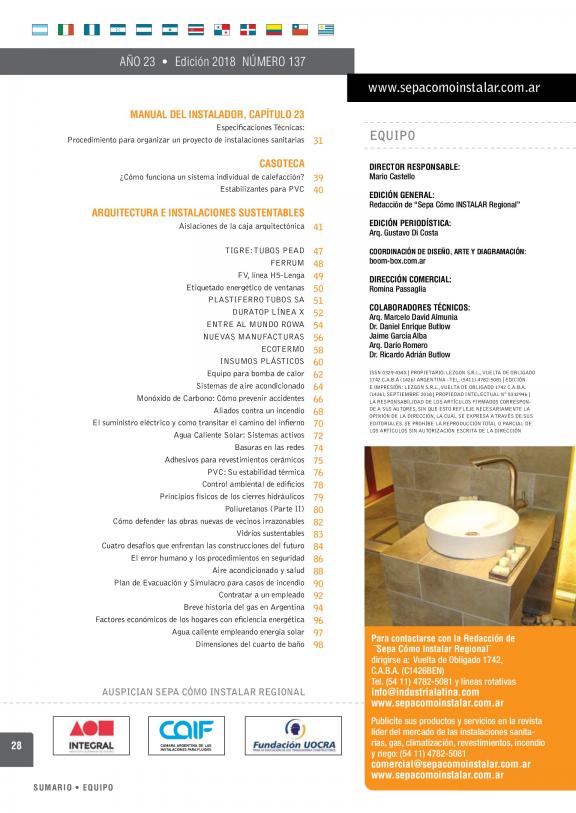 Publicación con contenidos técnicos y profesionales referentes a la industria de las instalaciones sanitarias, de gas, climatización, revestimientos e incendios.