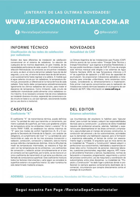 Publicación con contenidos técnicos y profesionales referentes a la industria de las instalaciones sanitarias, de gas, climatización, revestimientos e incendios.