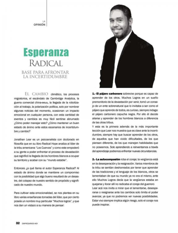 Empresarios Hoy trabaja por lograr una armonía en las relaciones de los empresarios entre sí y con los trabajadores, a través de una Nueva Cultura Laboral; impulsar el desarrollo de una economía con Responsabilidad Social; motivar la participación activa de sus socios, encaminada a generar las condiciones necesarias para el Bien Común; defiende los legítimos derechos de los asociados e impulsa las Reformas Sociales, Económica, Jurídicas y Políticas que fomenten el Desarrollo Nacional.